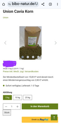 Auch hier kann man gesundes Futter bestellen, u.a. Berkel union cavia C in kleinen Mengen!